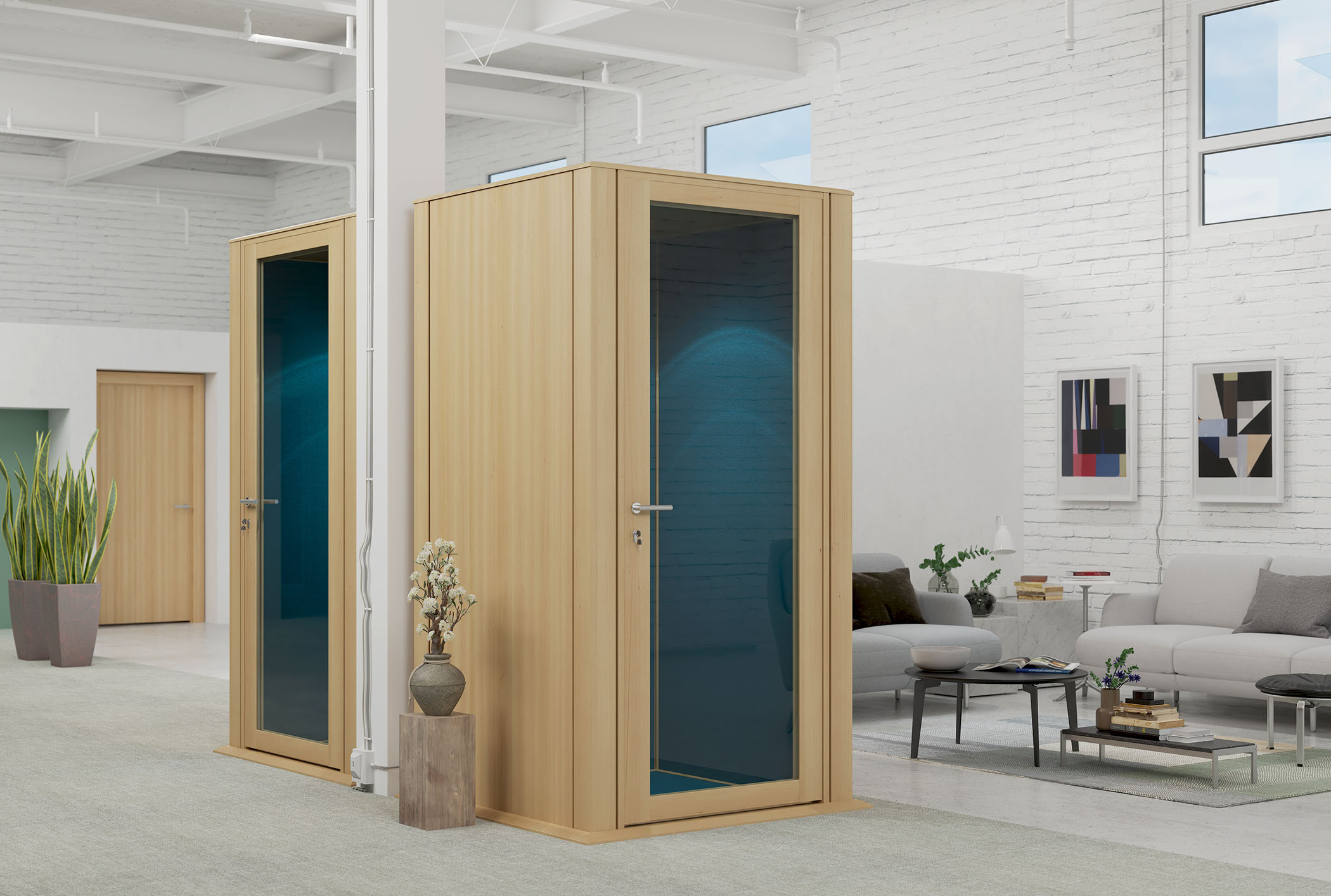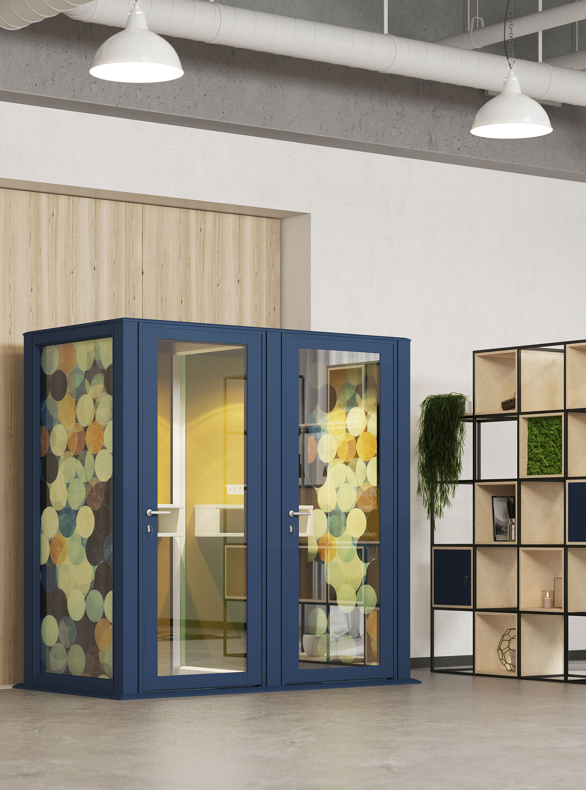 We can provide the glazed partition walls and the acoustic door with manifestations to offer a little more privacy where needed.